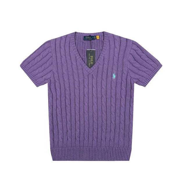 RL Classic Versatile V-Neck Cable Knit Short-Sleeve Sweater