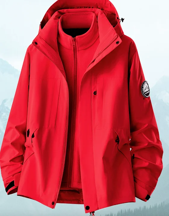 3-in-1 Outdoor Mountaineering Jacket, Windproof and Waterproof Hooded Climbing Jacket2