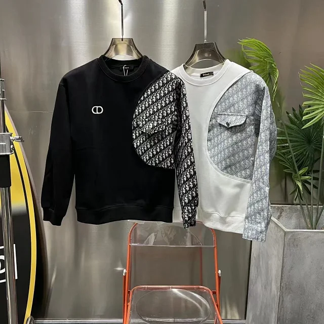 D Fashionable and Personalized Denim Patchwork Crewneck Casual Sweatshirt