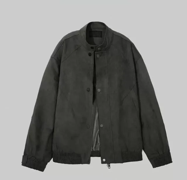 DW Smiley Letter Solid Color Stand Collar Cotton Jacket1
