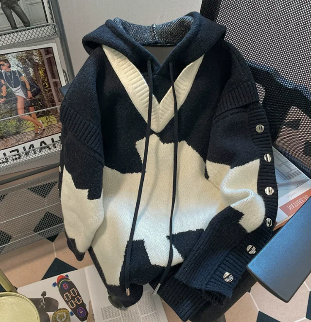 Loose Fit Zipper Sweater Top with Lapel Collar, Designed to be Slimming and Casual