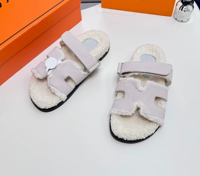 Warm Velcro Casual Flat Thick-Soled Fleece Slippers