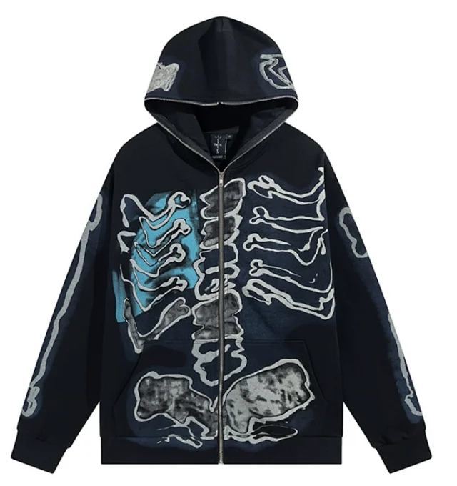 T.S Trendy Skull Pattern Zipper Hoodie Jacket