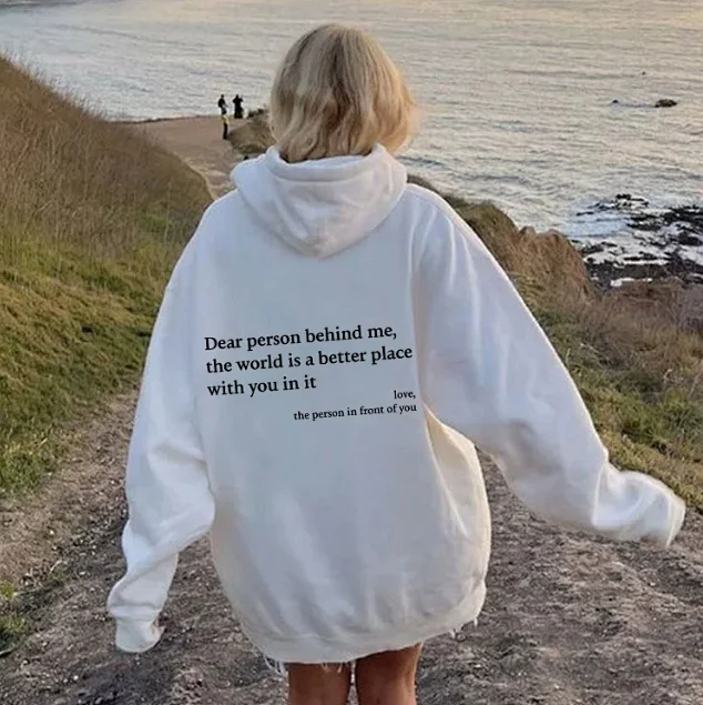 Solid color letter drawstring hoodie