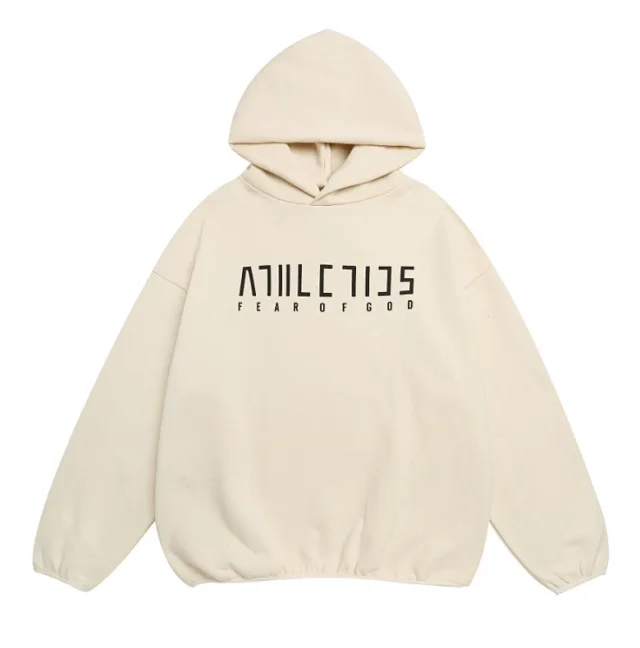 FOG Trendy Letter Pattern Pullover Fleece-Lined Hoodie