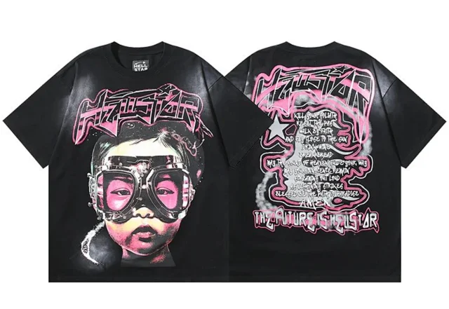 Hellstar T-shirt Alien Glasses Kids print wash black short sleeve T-shirt