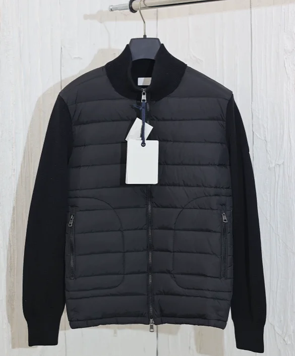 M family's classic knitted patchwork jacket is fashionable with single down and is lined with the same down for men and women