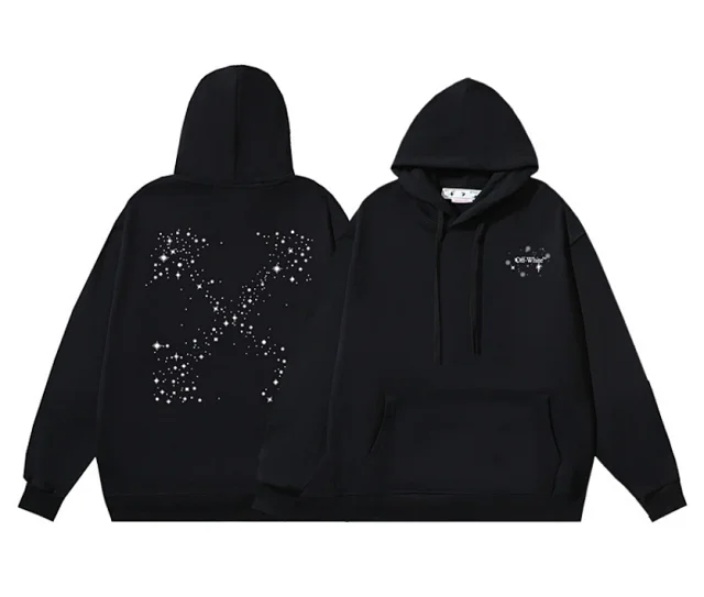 OW Ink-Splash Arrow Pattern Pullover Hoodie with Fleece Lining