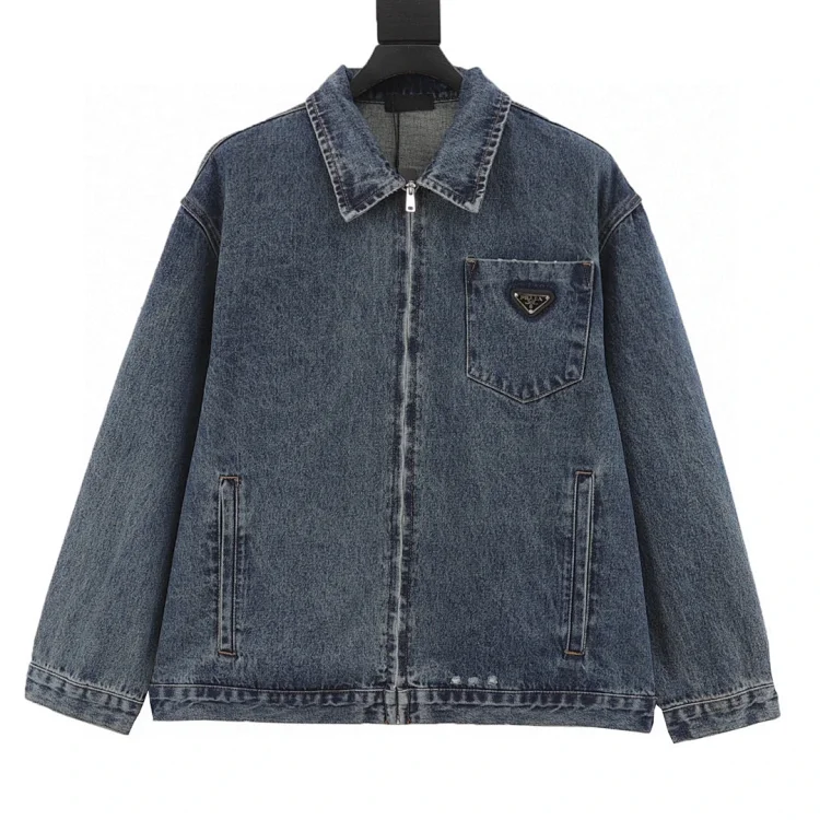 Pr water-washed distressed canvas denim jacket