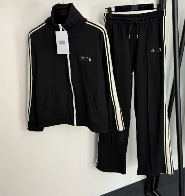 Stand-collar long-sleeve zip-up jacket with casual wide-leg long pants set