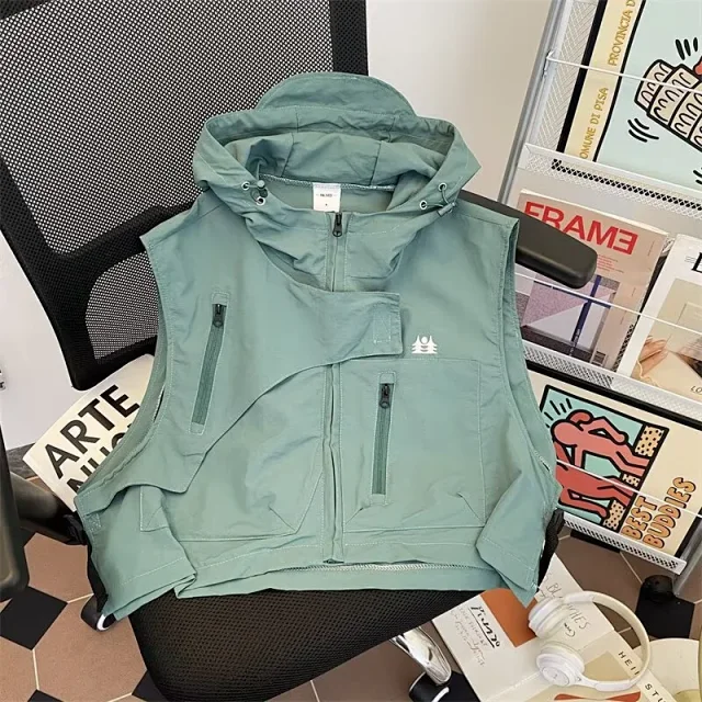 Short Retro Mountain-Style Sleeveless Couples Hooded Vest2