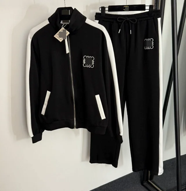 Stand-collar long-sleeve zip-up jacket with elastic waist casual long pants set