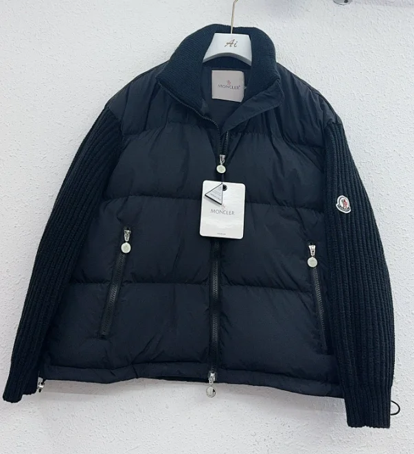 Minimalist knitted sleeve splicing high-neck zipper down jacket3