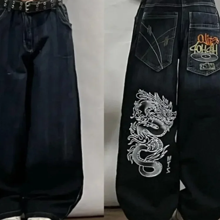 Vintage wash Y2K embroidered hip-hop pattern jeans