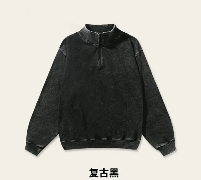 Half-zip stand collar retro loose drop shoulder sweatshirt 300g