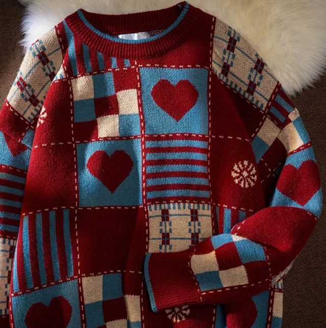 Trendy Comfortable Couple's Casual Color Block Crewneck Sweater1