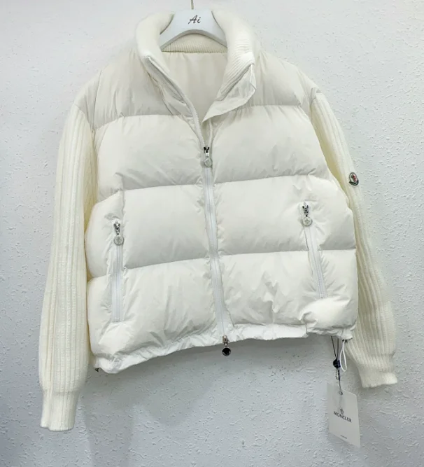 Minimalist knitted sleeve splicing high-neck zipper down jacket