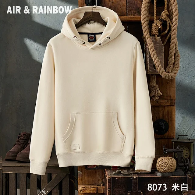 Heavyweight 450g Pure Cotton Fleece-Lined Hoodie with Long Sleeves